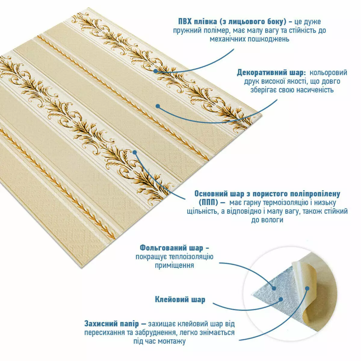 - Декоративний шар: кольоровий друк високої якості, що довго