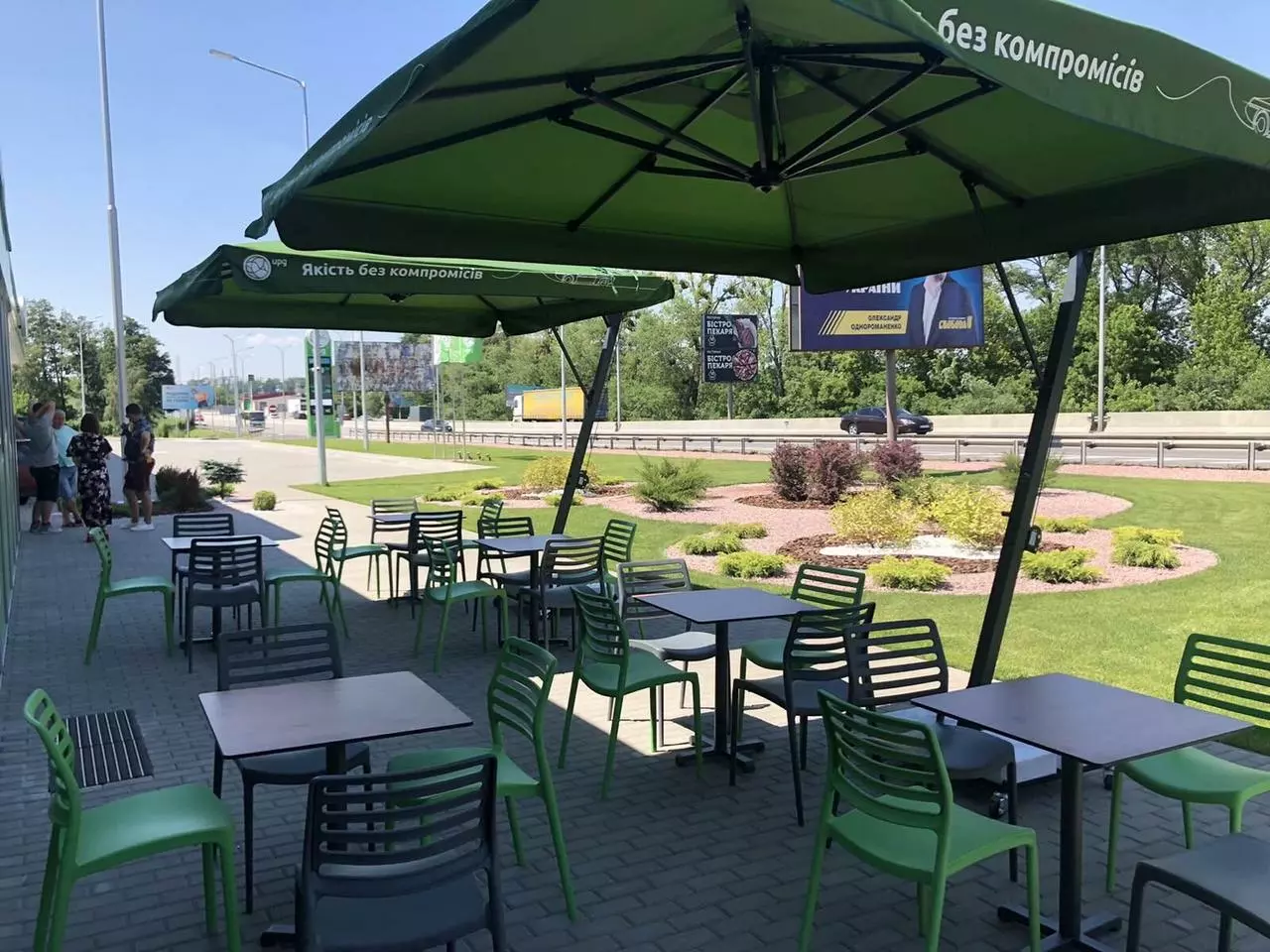 басейну, відкритих літніх майданчиках кафе, барів і ресторанів.