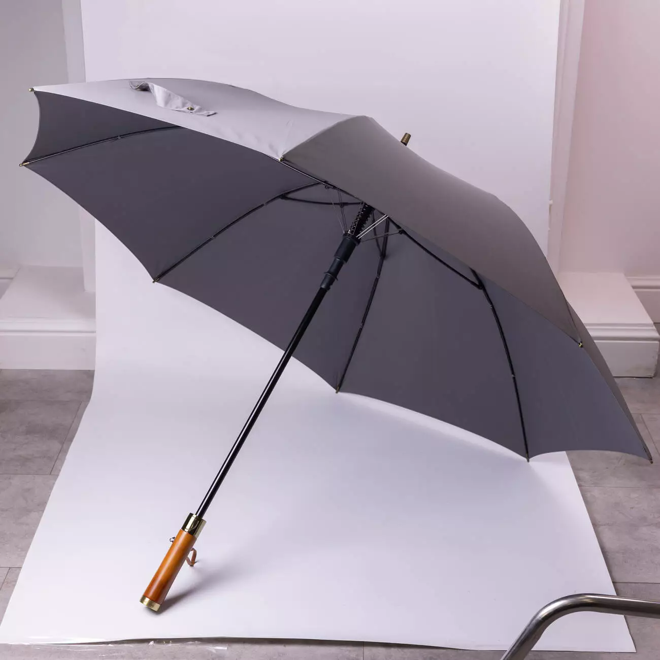 Купол виготовлений із поліестеру, що стійкий до вологи та швидко висихає. Основа виконана з металу, а спиці зі склопластику, завдяки чому парасоля витримує навантаження та зберігає форму навіть під час сильного вітру. Довжина основи у розкладеному вигляді становить 86 см, довжина спиць — 68 см, у конструкції використано 8 спиць.