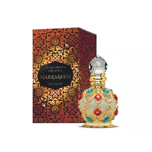 Парфумована олія Marrakech. Маленька ювелірна пляшечка, що нагадує дорогоцінну східну прикрасу, є не що інше, як флакон з марракешською олією. Чудово прикрашена різнокольоровими, красиво відблискуючими каменями в золотих прикрасах, пляшка стане ідеальною прикрасою туалетного столика кожної жінки. Усередині нього прихований сміливий вечірній аромат. Класика з інтригуючим відтінком Сходу. Довготривалий аромат повільно розкриває наступні ноти аромату, від солодких пряно-фруктових до легких квіткових, підсолоджених ваніллю. Флакон оснащений піпеткою, яка полегшує дозування потрібної кількості масла на шкіру.