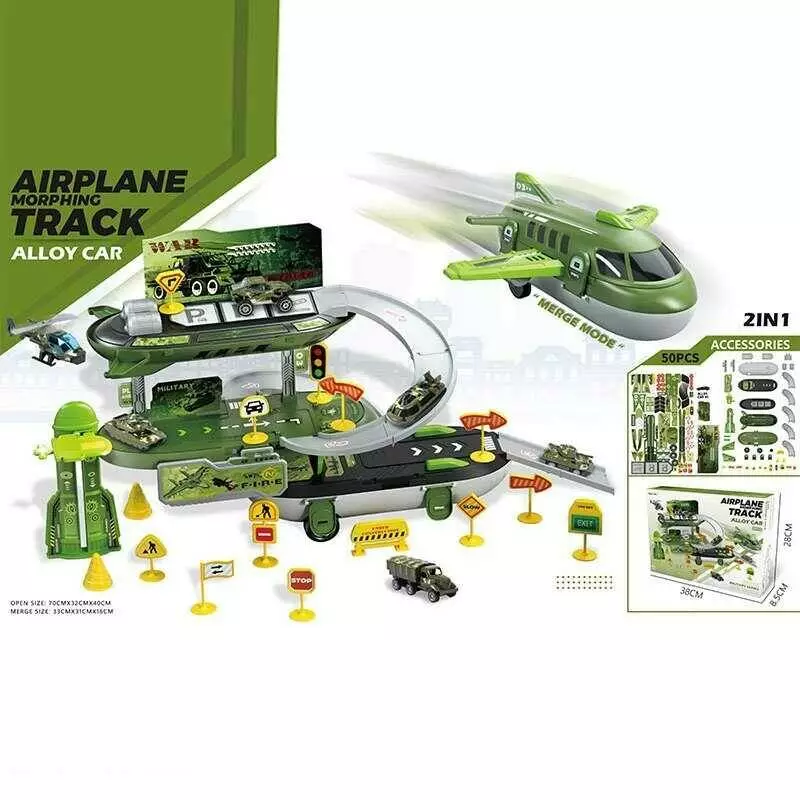 Парковка 6673 (36/2) 50 елементів, літак, 2в1, металопластикова машинка, дорожні знаки, в коробці