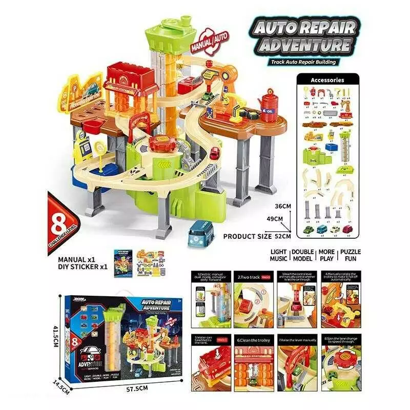 Трек JP 588-6 (8) мелодія, підсвічування, 8 машинок, автоматичний підіймач, автомийка, в коробці