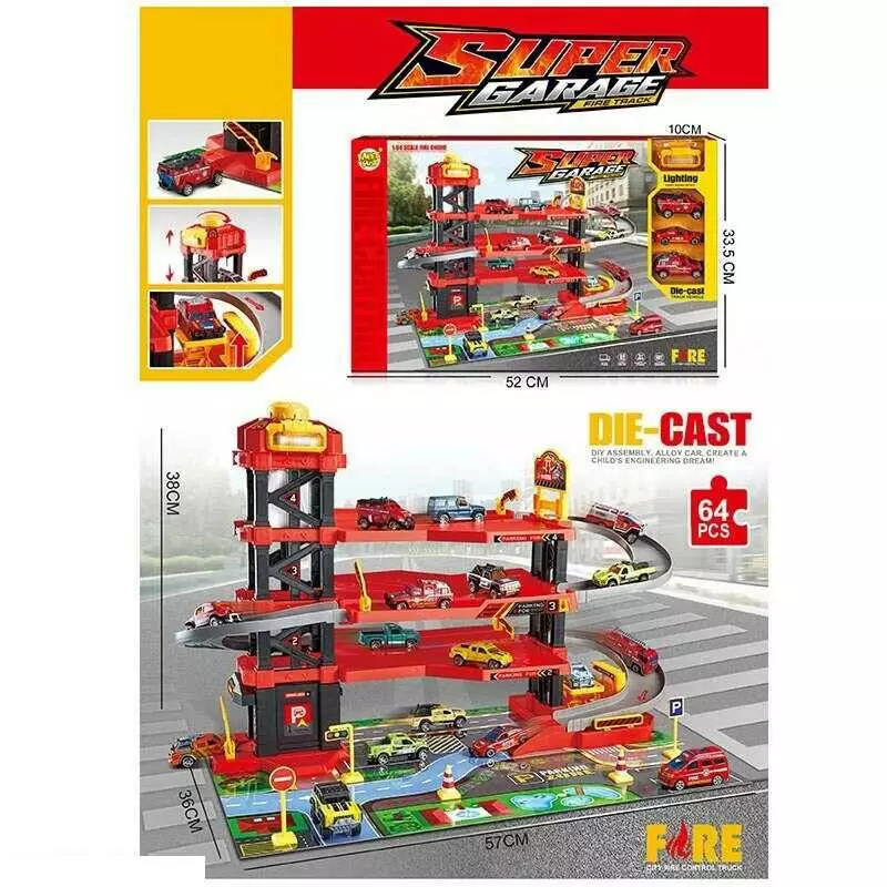 Трек MH 162 (16/2) 64 елементи, 3 машинки, механічний підіймач, підсвічування, звук, на батарейках, наліпки, в коробці