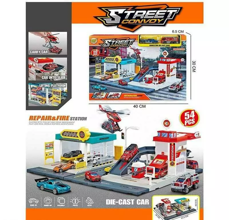 Трек MH 182 (24/2) 54 елементи, наліпки, 2 машинки, вертоліт, в коробці