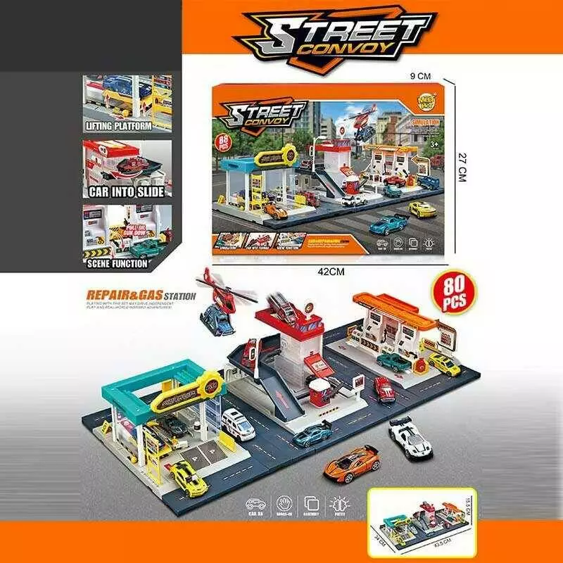 Трек MH 189 (12) 3 в 1, 70х34х19,5 см, 88 елементів, 6 металопластикових машинок, в коробці
