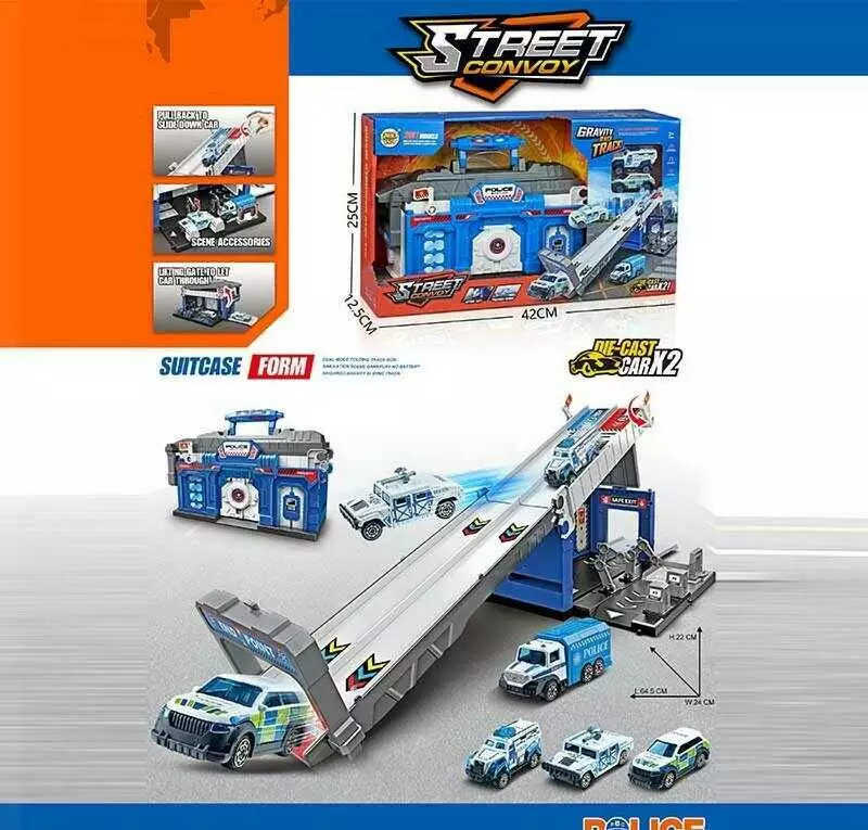 Трек MH 190 (18) запускач, 2 металопластикові машинки, наліпки, в коробці