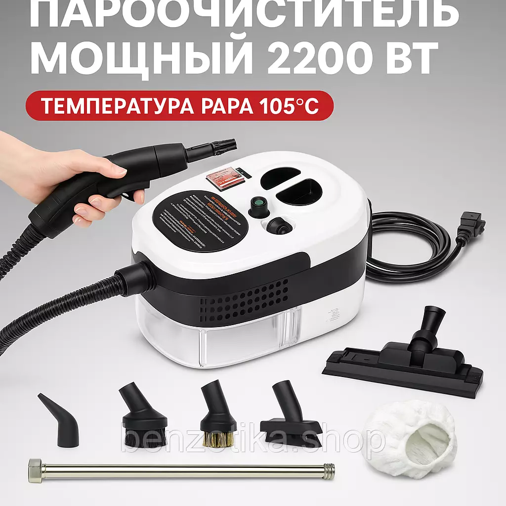 Пароочиститель для дома 2200 Вт с 6 насадками | Паровая швабра,