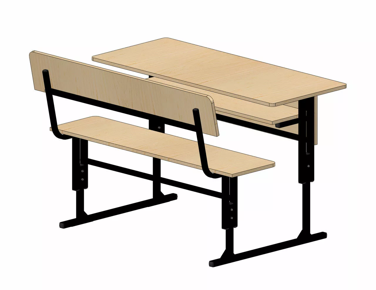 парта ученическая двухместная (стол + скамья со спинкой)