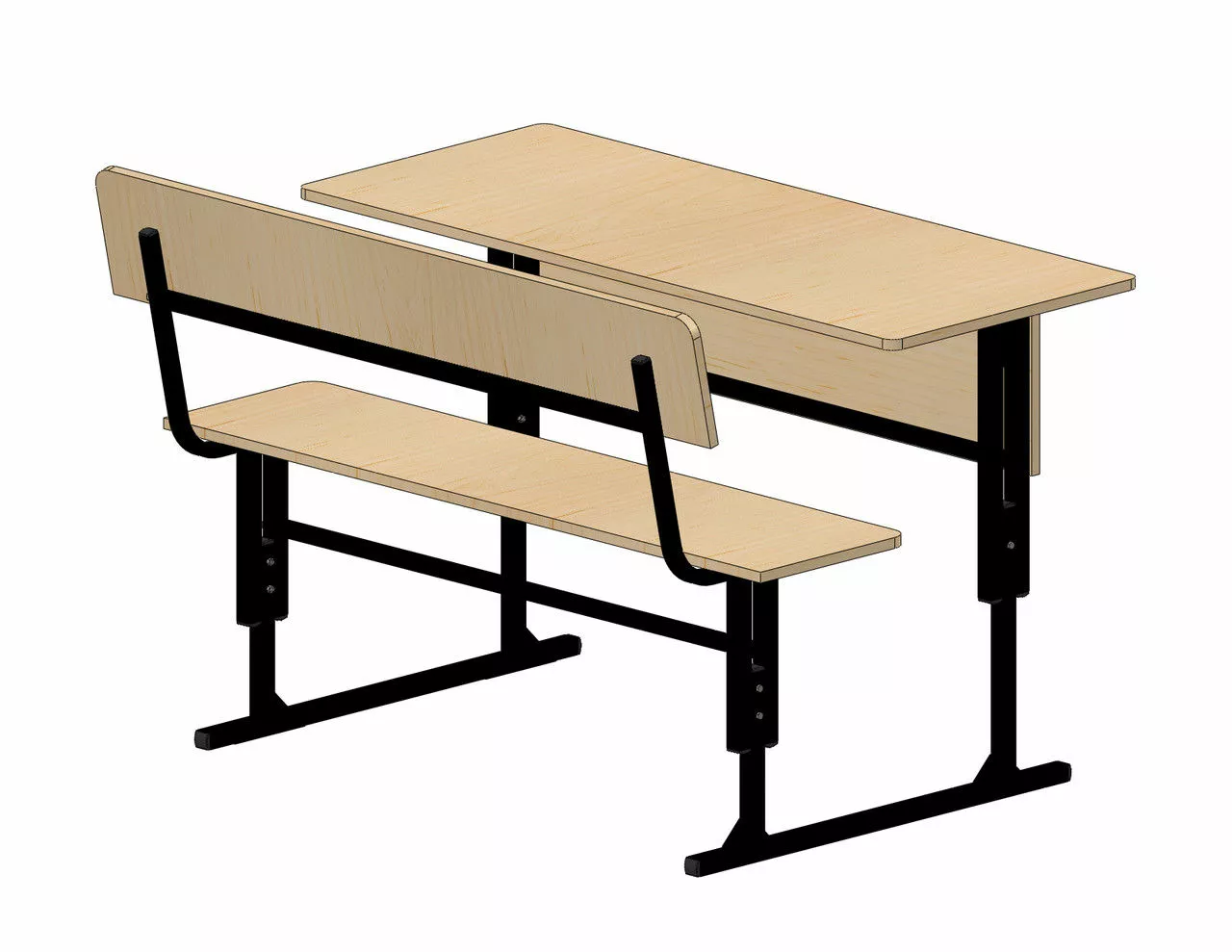 парта ученическая двухместная (стол + скамья со спинкой)