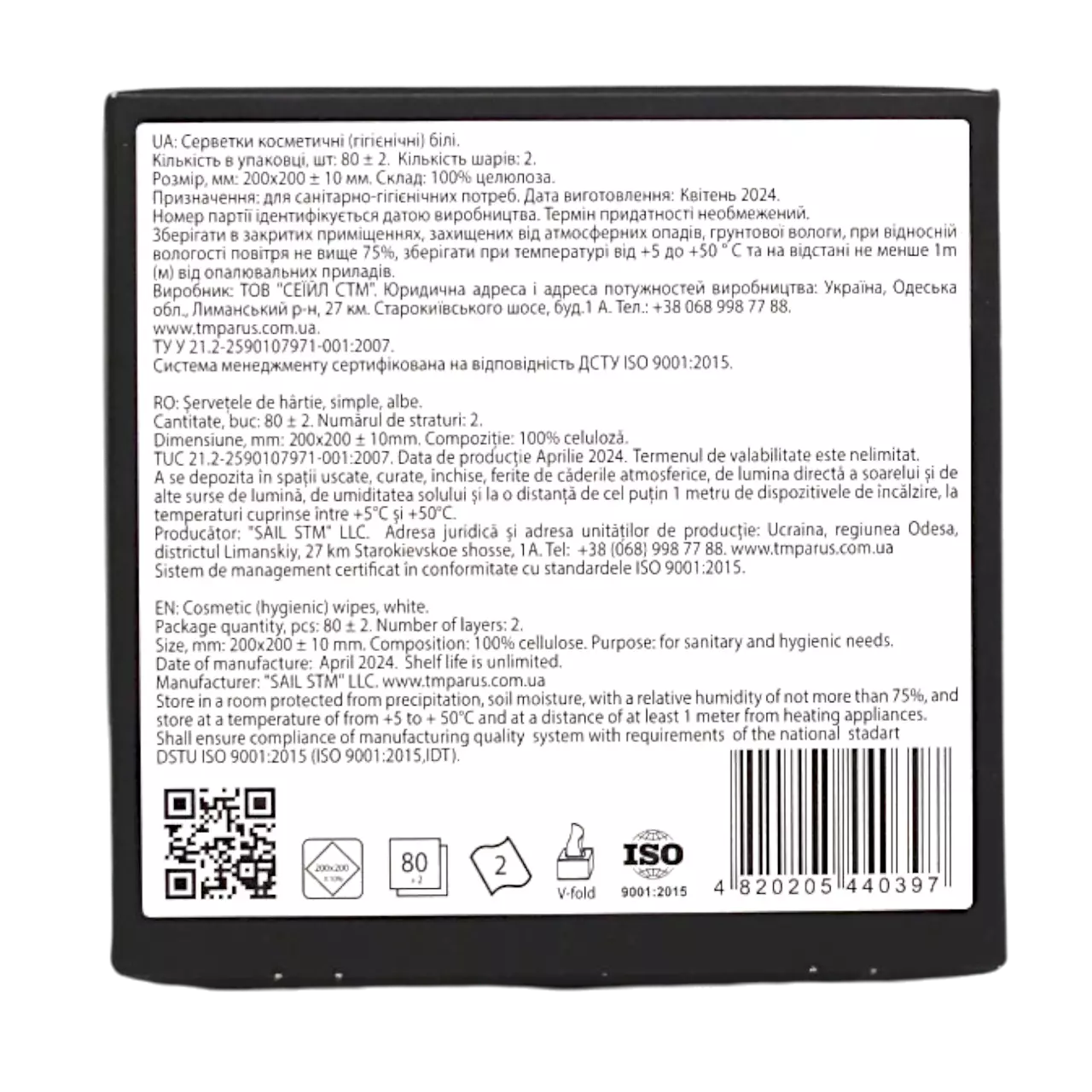 Косметичні серветки Parus розміром 20*20 см, виконані з двох шарів