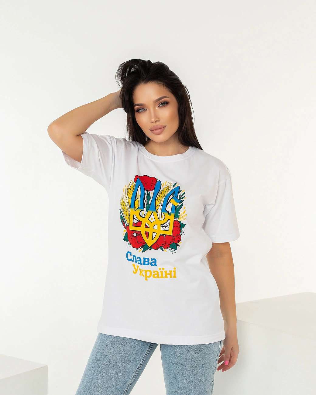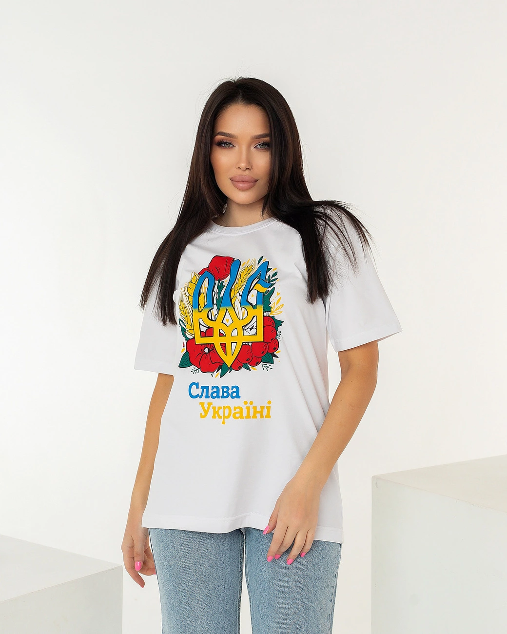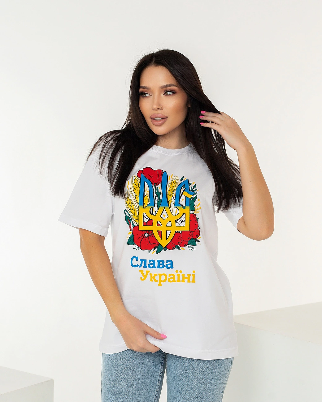 Патріотична футболка білого кольору "Маки" від YuLiYa Chumachenkо