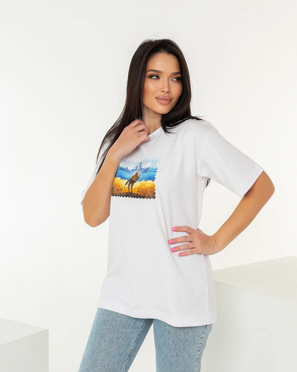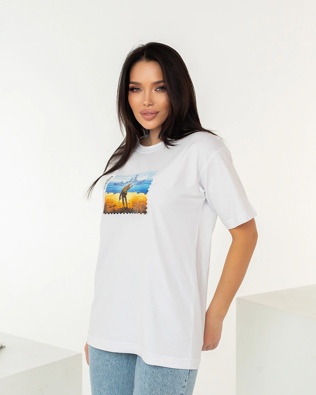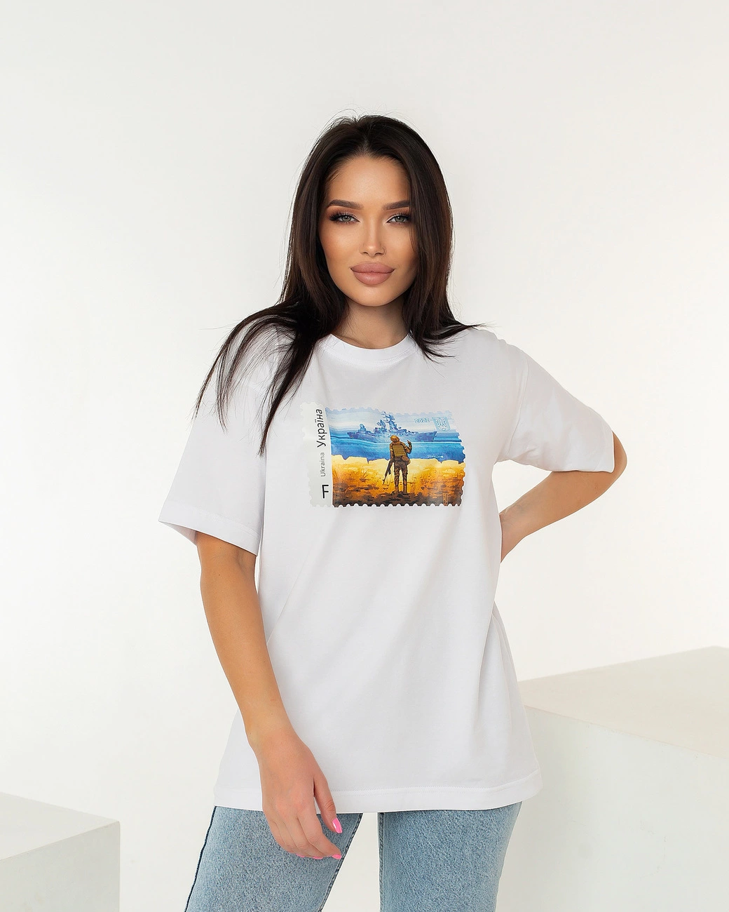 Патріотична футболка білого кольору "Марка" від YuLiYa Chumachenkо