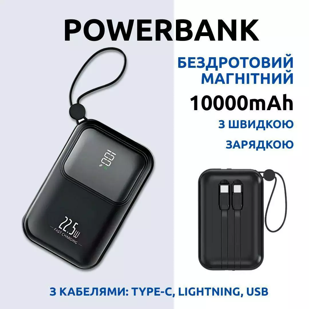 Вбудовані кабелі: Type-C / Lightning / USB