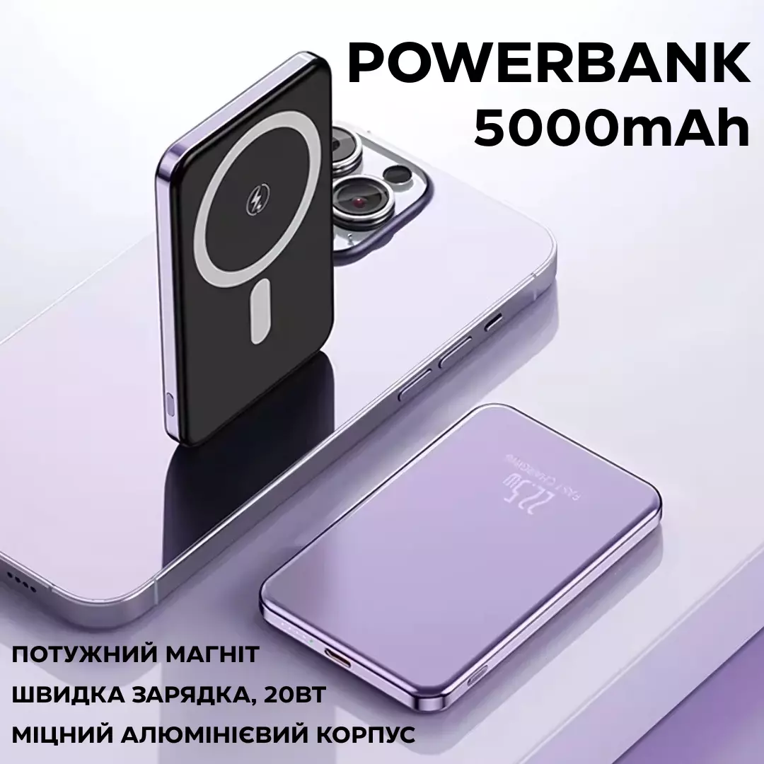 Компактний і стильний Powerbank з магнітною зарядкою ідеально