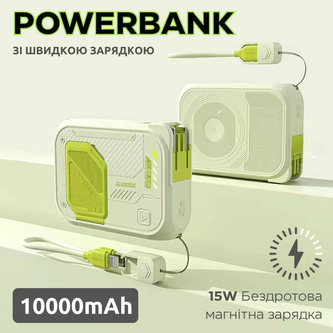 Павербанк с магнитной беспроводной зарядкой и откидной подставкой -