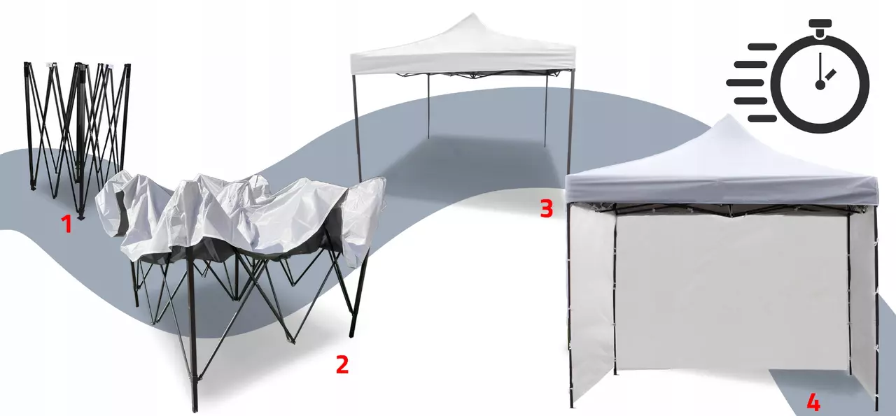 Система защелок облегчает сборку, разборку и регулировку складного павильона.