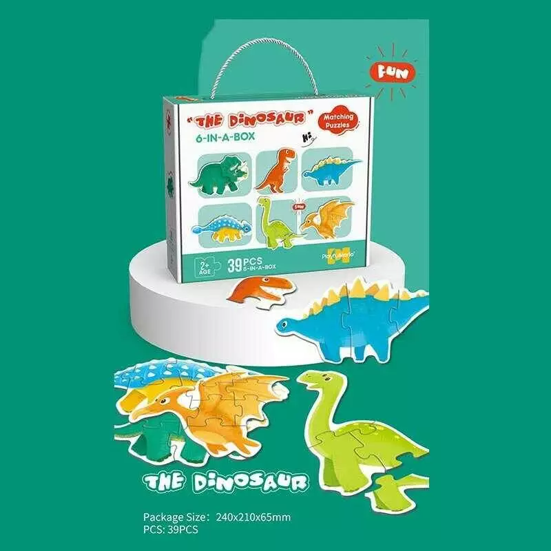 Пазли 88769 (60/3) 39 елементів, "Динозаври", 6 тваринок, 6 карток-прикладів, в коробці