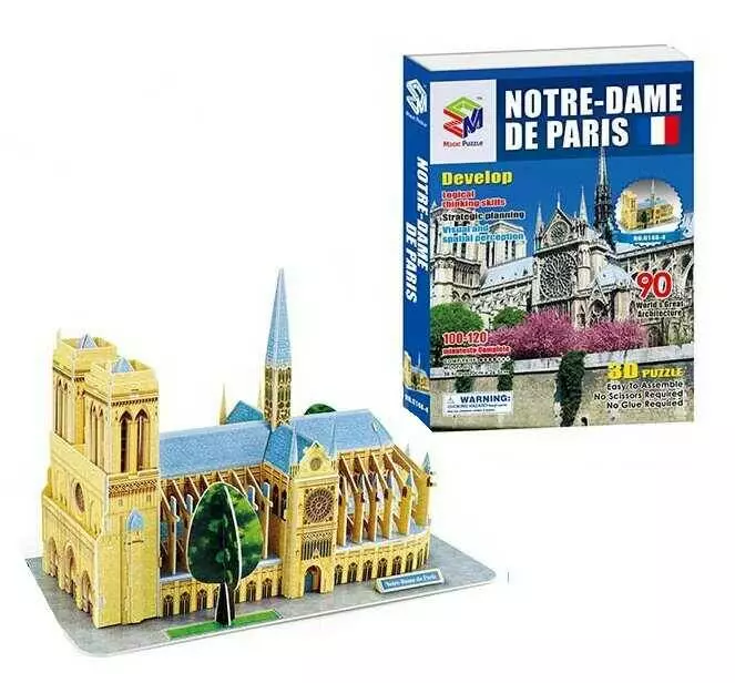 Пазлы 3D G 168-4 (24) "Нотр-Дам-де-Пари", 90 элементов, высота 27 см, в коробке