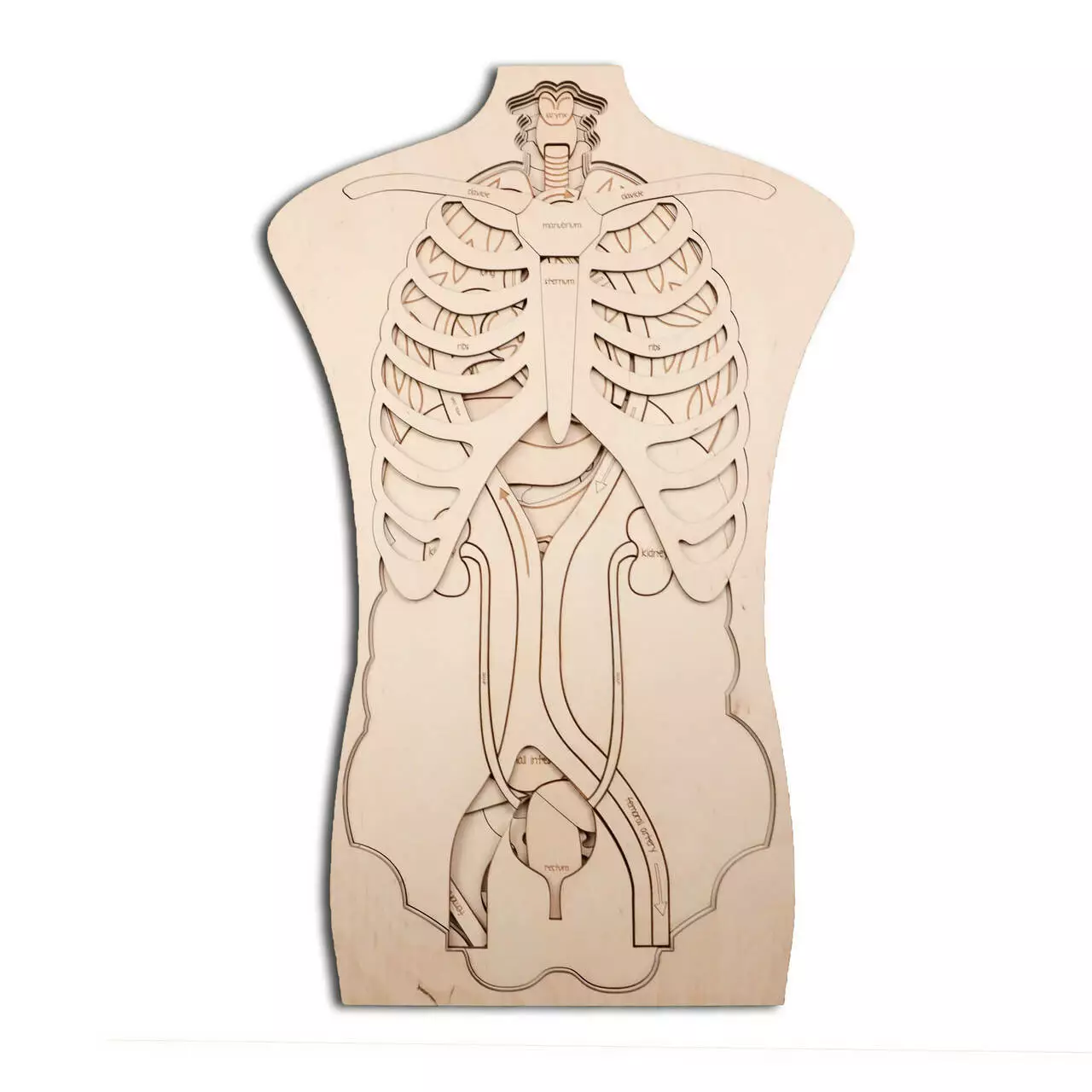 Пазл із будовою тіла людини - це наочний посібник для детального вивчення розташування органів людини. Матеріл хдф/фанера.