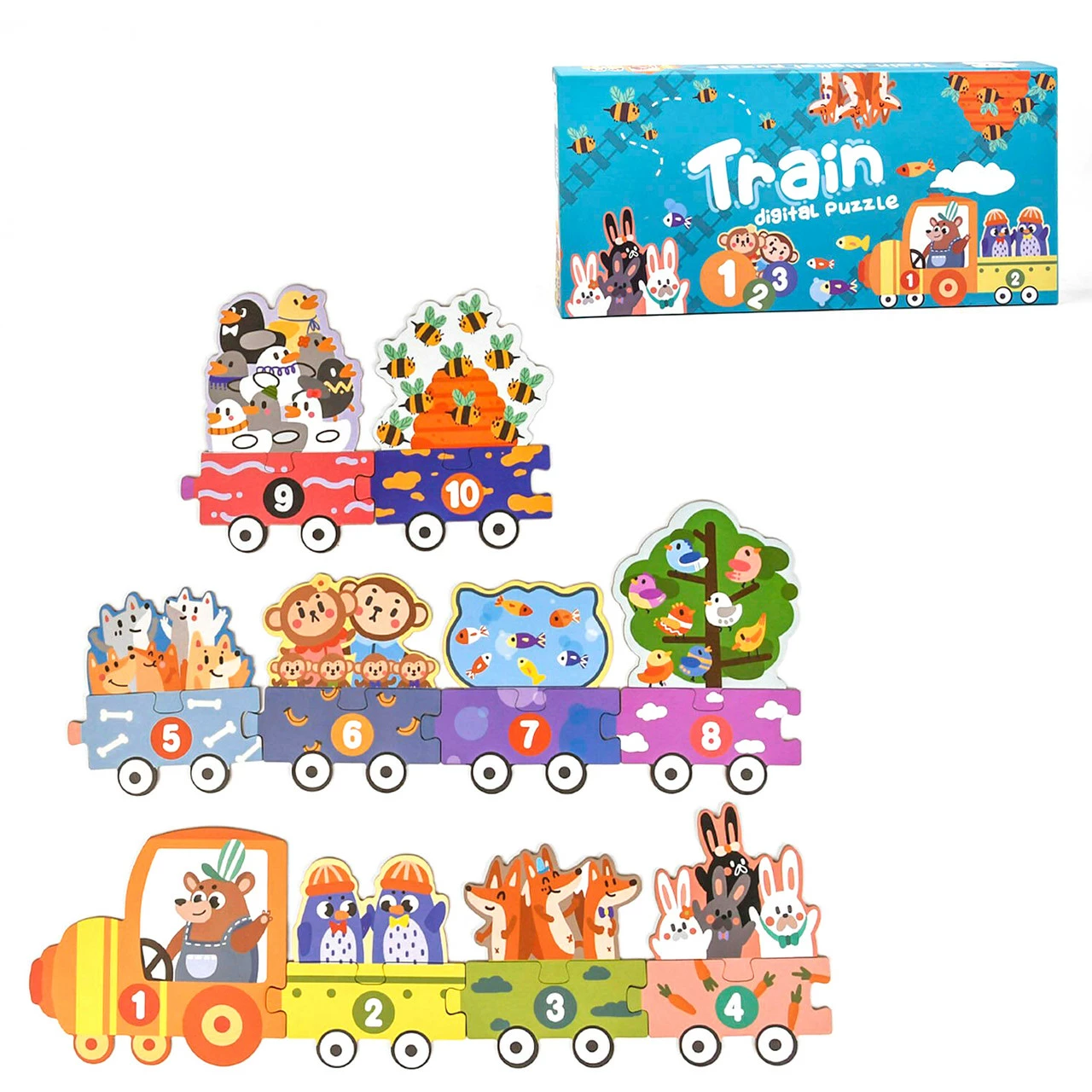 элементов пазла. Вагончики поезда пронумерованы, каждый имеет свой