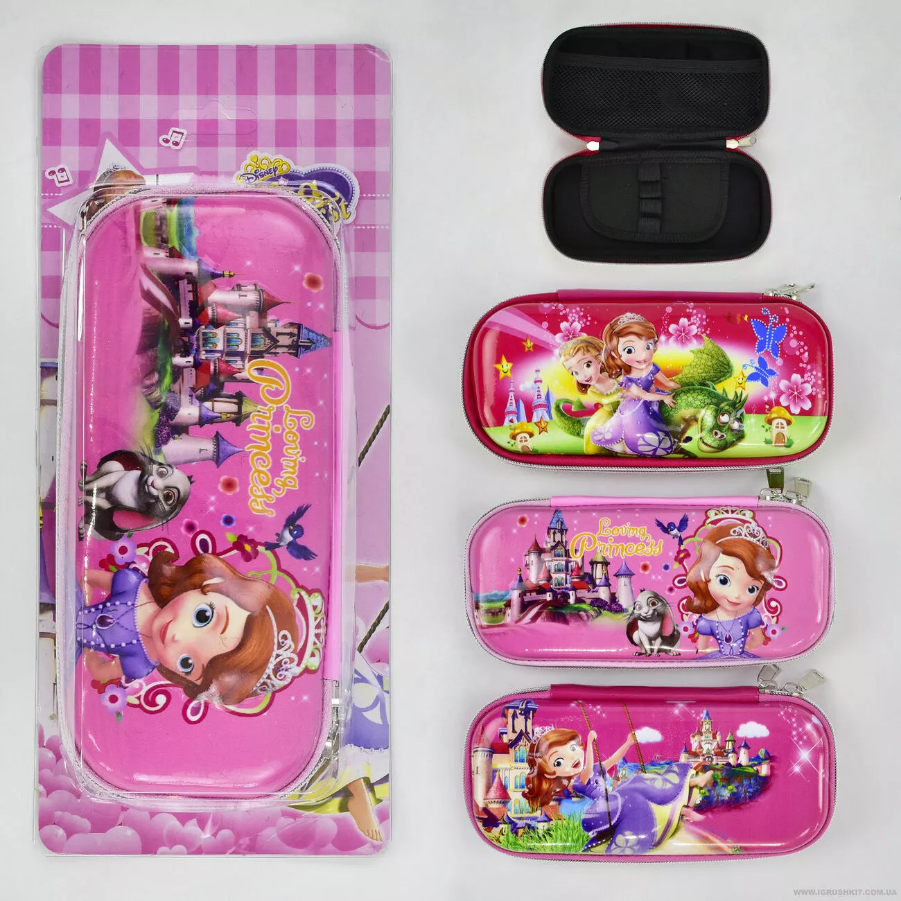 Пенал С 29825 виконаний з міцного матеріалу, на кришці 3D зображення принцес. Пенал складається з одного місткого відділення, яке в свою чергу ділиться на кілька зон. В одному боці встановлена зона з гумками для фіксації письмового приладдя, в інший карман. Пенал на блискавці. Пенал С 29825 представлений в 3-х кольорах: червоний, рожевий, малиновий.