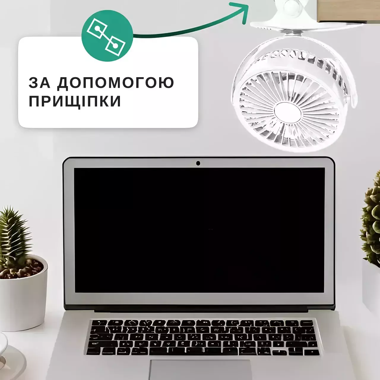 2. Удобное крепление-прищепка: Уникальная конструкция прищепки позволяет крепить вентилятор к любой поверхности — край стола, полки и т.д. Это обеспечивает максимальную гибкость и удобство в использовании.
