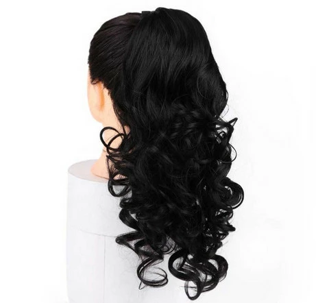 Перука хвіст чорний. Волосся шиньйон хвилястий. Накладної хвіст з затискачами. Шиньйон для брюнеток 51 см