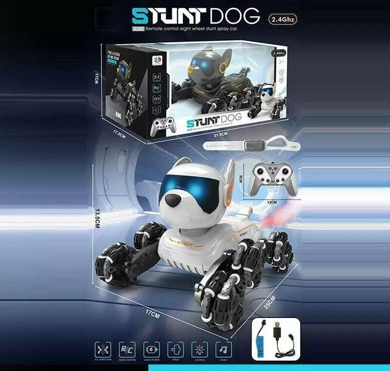 Песик на радіокеруванні 809-47 A (36) парогенерація, звуки, світло, трансформація коліс, пульт 2.4 GHz + сенсорний браслет, акум. 3.7V, в коробці