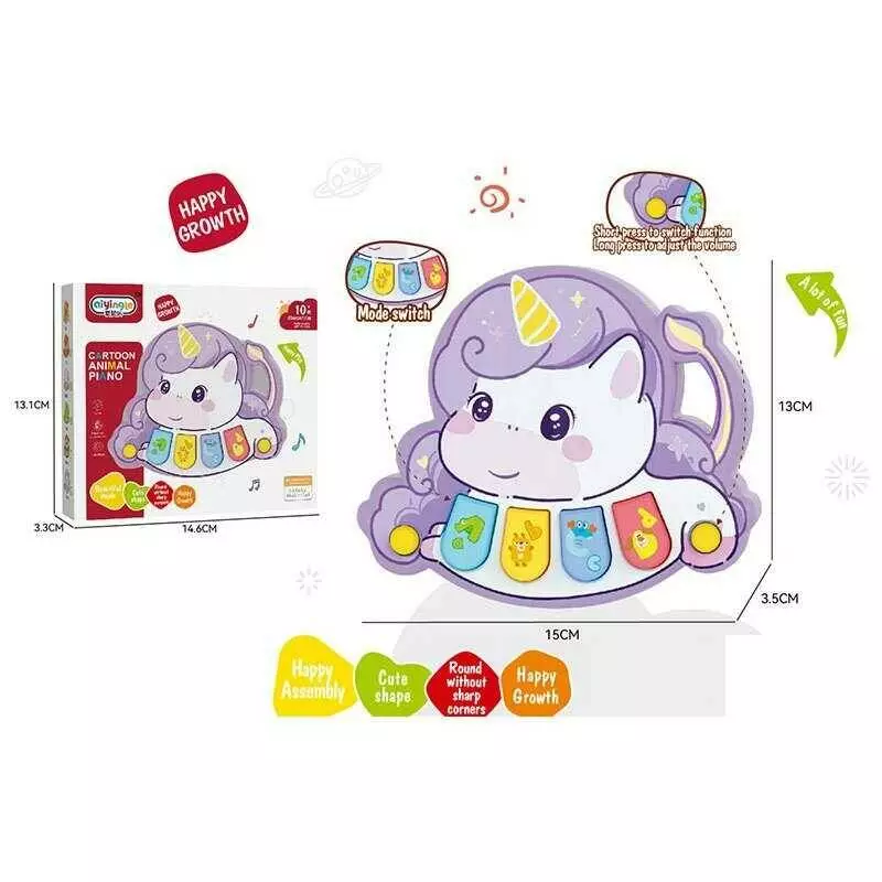 Піаніно 368-90 M (240) “Єдиноріг”, регулювання гучності, режими гри, ноти, мелодії, звуки тварин, на батарейках, в коробці