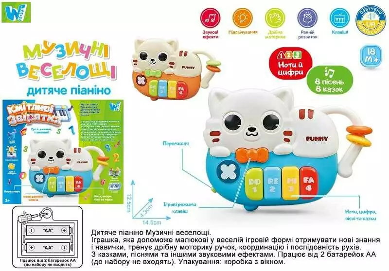 Піаніно музичне 63805 (48) "WToys", ОЗВУЧУВАННЯ УКРАЇНСЬКОЮ МОВОЮ, 8 пісень, 8 казок, цифри, підсвічування, намистини, в коробці