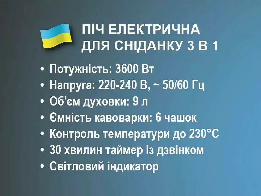 Піч електрична для сніданку 3 в 1 3600Вт BITEK BT-5308B/ 6625 (4)