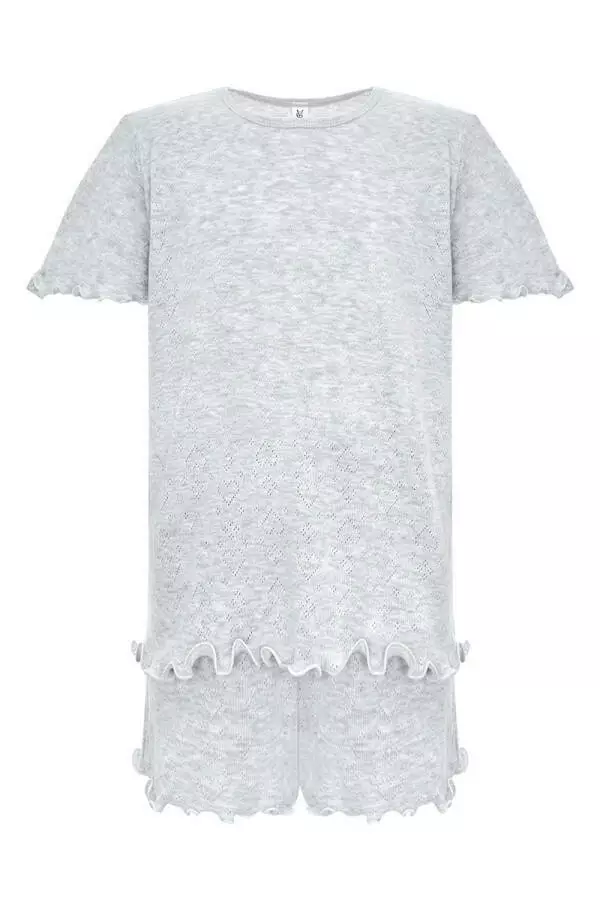 Піжама для дівчаток від брендового виробника German Volf з колекції Трансверлі сірий меланж виготовлена з натуральної 100% бавовни. Дана модель призначена для повсякденного носіння у якості домашнього одягу або для сну. Підходить для теплої пори року.