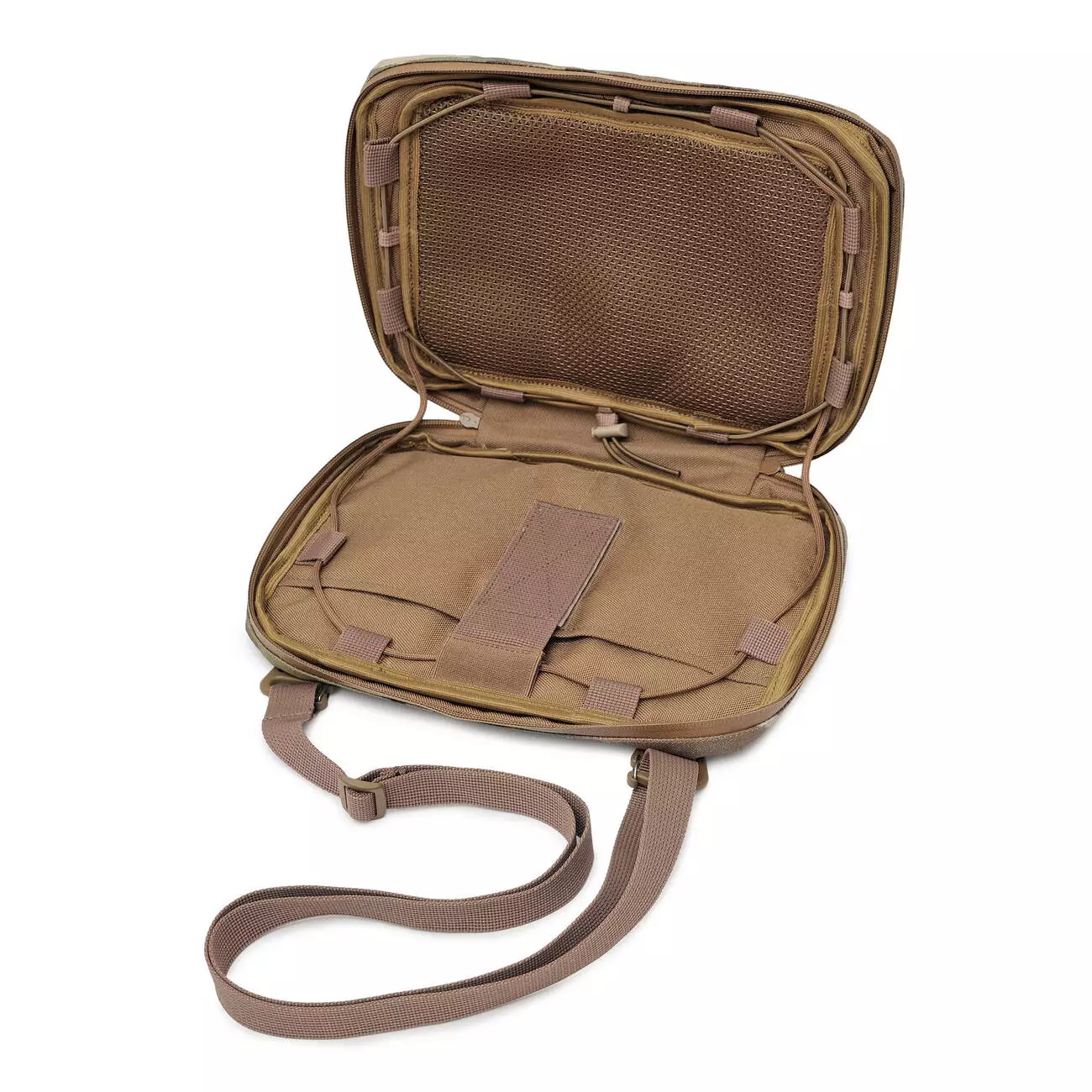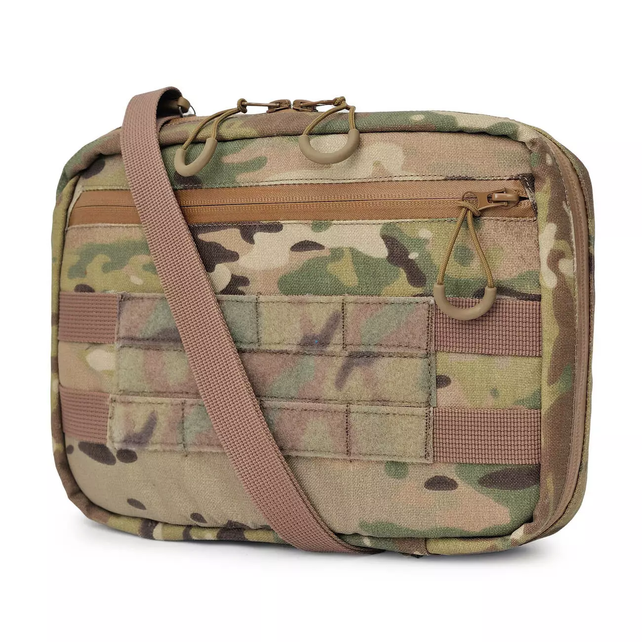 Підсумок може використовуватись як окрема сумка або кріпитися до плитоноски — як функціональна платформа для роботи з планшетом у полі.