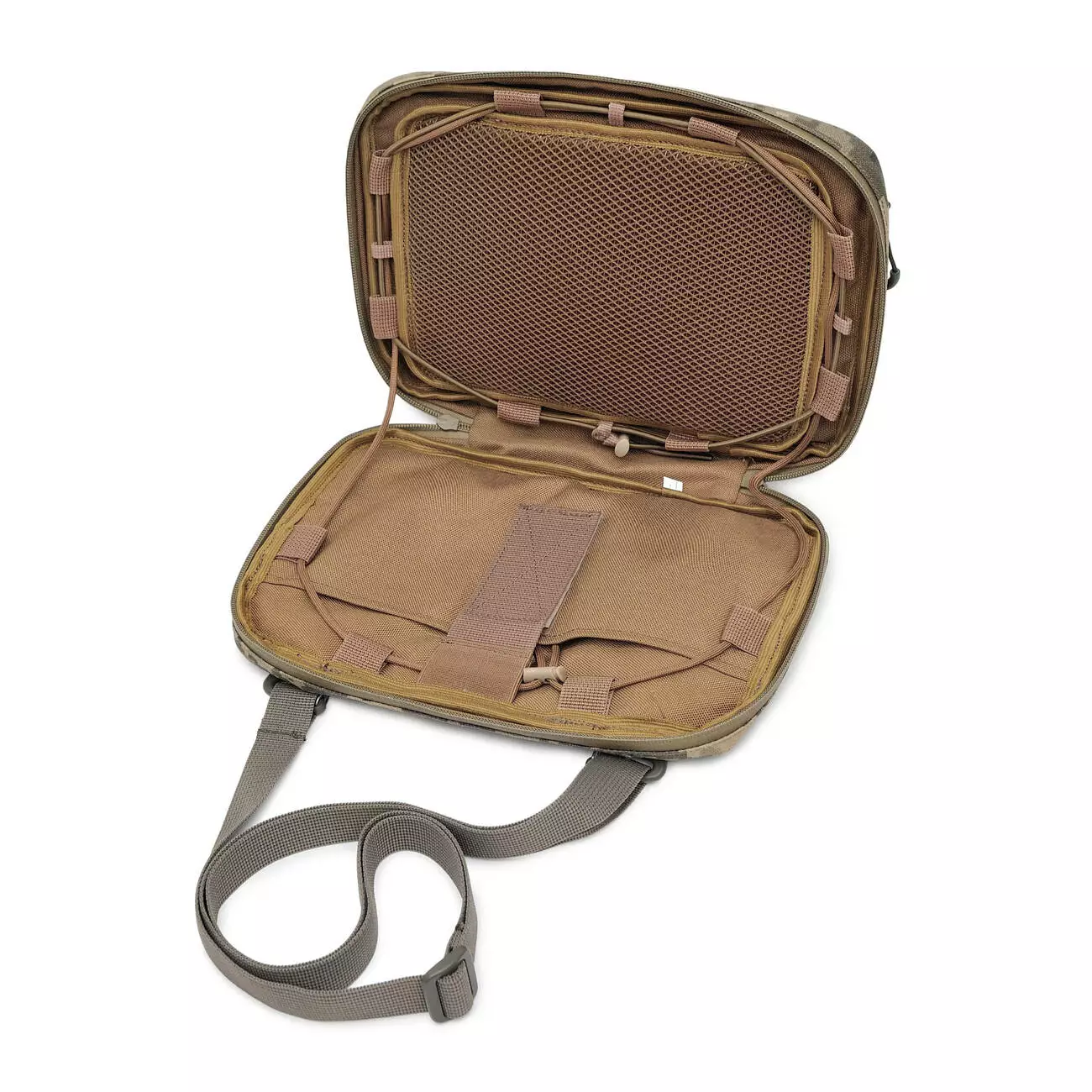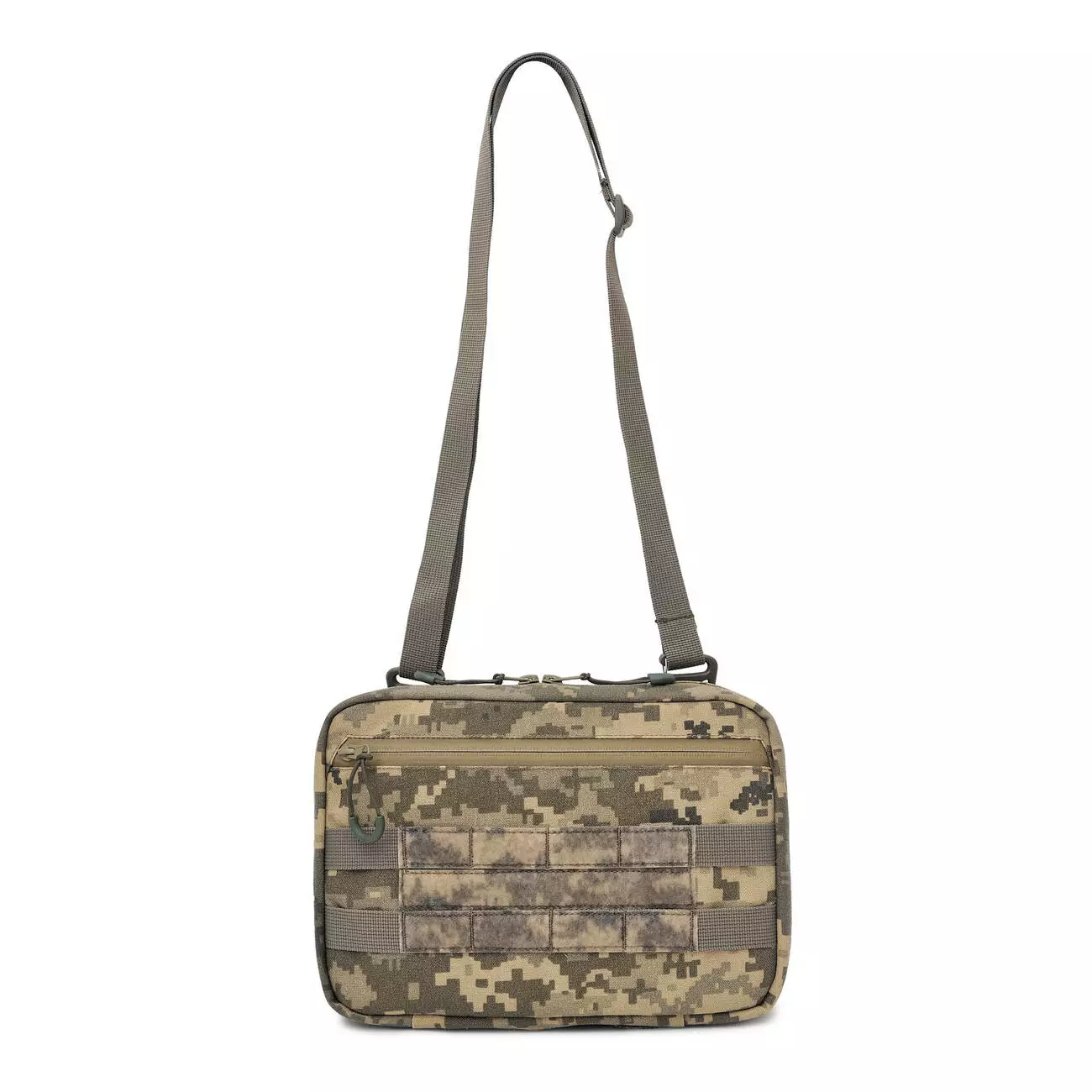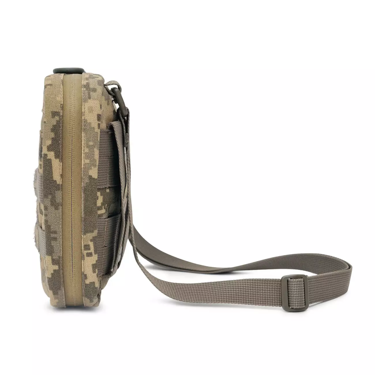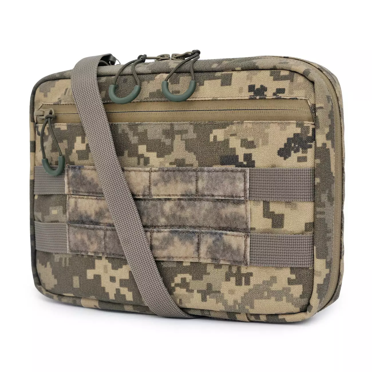 Підсумок може використовуватись як окрема сумка або кріпитися до плитоноски — як функціональна платформа для роботи з планшетом у полі.