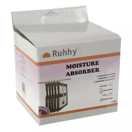 У НАБОРІ 5 ПРЕДМЕТІВ - до комплекту входять 5 поглиначів у гігієнічному пакуванні (кожен окремо), тож ви можете бути впевненими, що вміст гігієнічно чистий та сухий! Гранул вистачає на 2-5 місяців. Довговічність залежить від вологості та температури повітря в приміщенні. Гранули вбирають вологу, залишаючи воду на дні пакета.