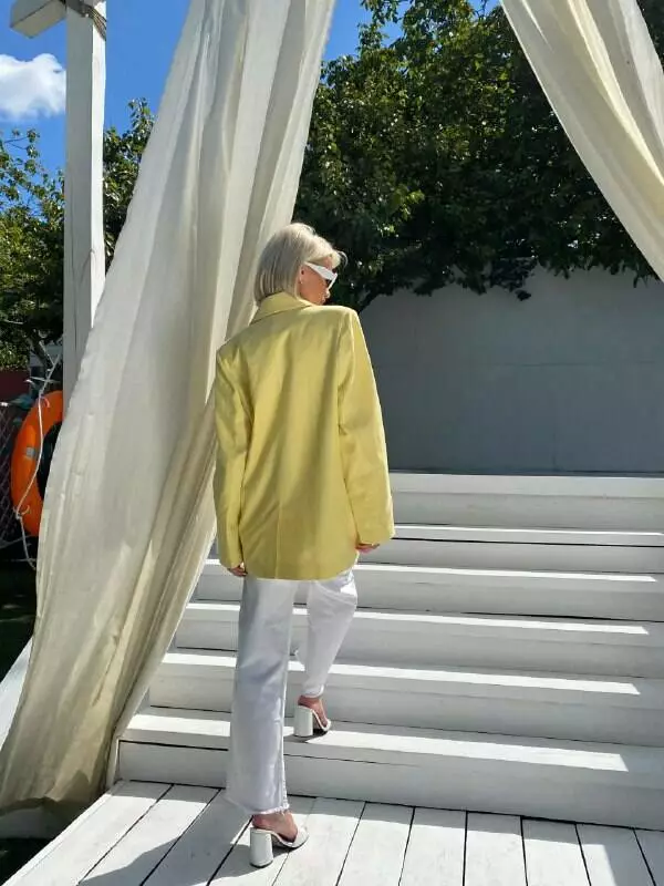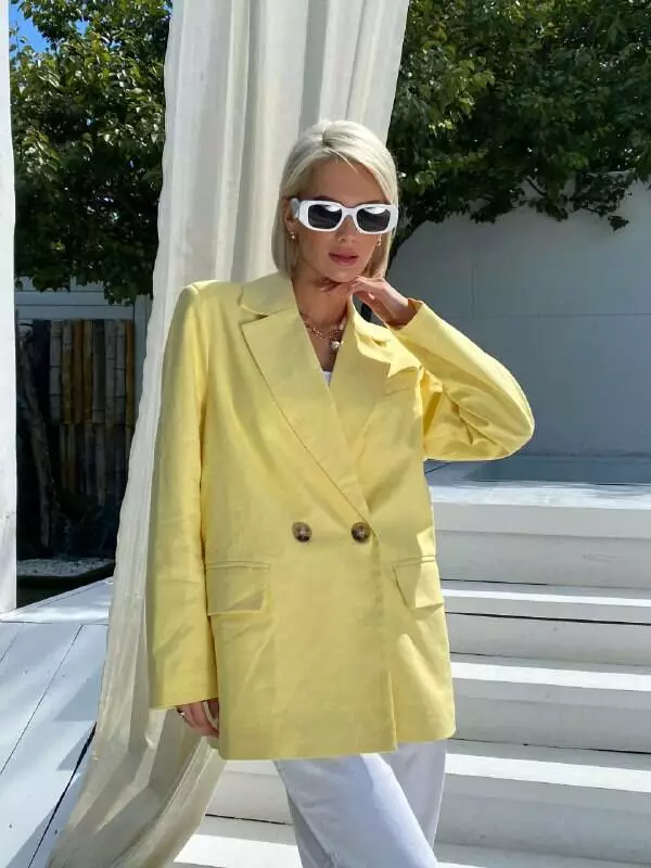 Трендовий піджак «з чоловічого плеча», з карманами, бавовняна підкладка, шліць по спинці.