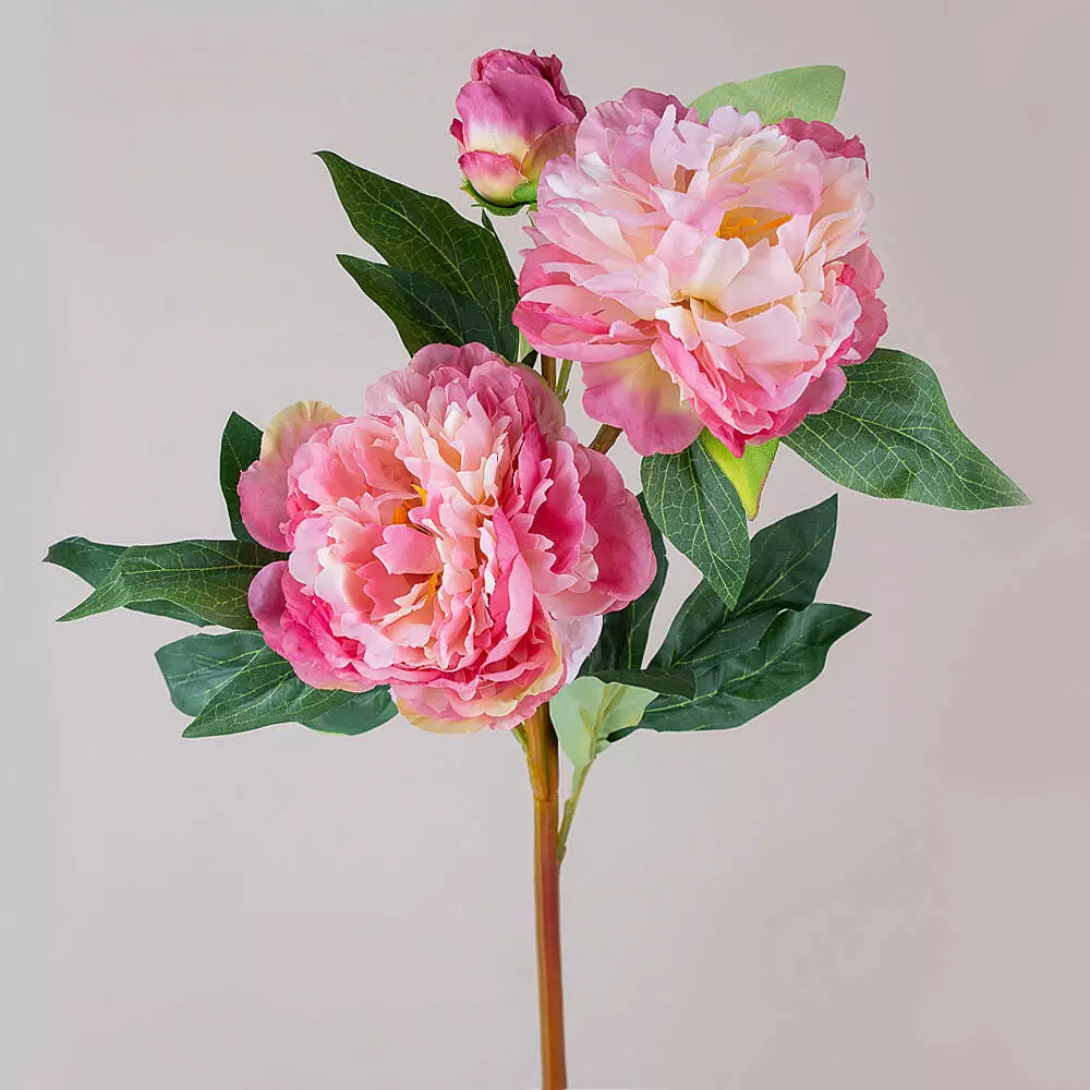 Пион искусственный розовый, тройная ветка 75 см – реалистичный цветок для декора и букетов