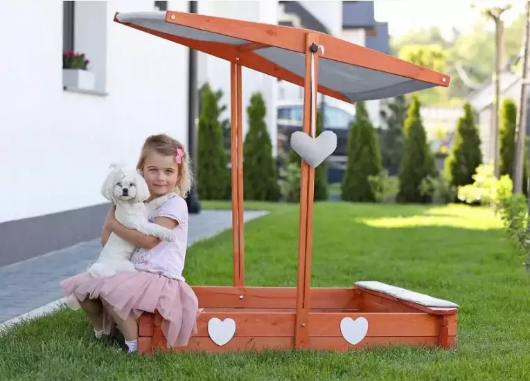 Пісочниця оснащена дахом, який також служить бар'єром від небажаних
