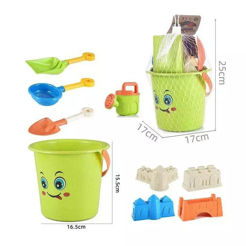 Головна > Каталог > Іграшки > Ігрові набори > Пісочний набір C 481 (72/2) відерце висотою 15.5 см, 4 формочки, лійка, граблі, лопата, ситечко, в сітці оптом
