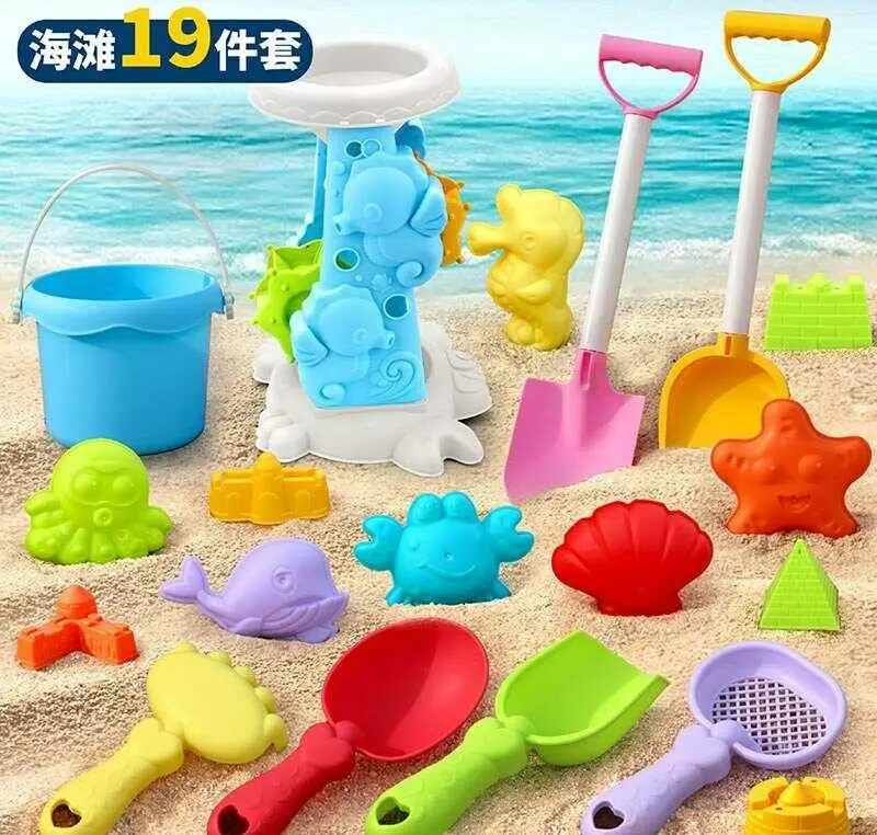 Головна > Каталог > Іграшки > Ігрові набори > Пісочний набір W 218-44 (72/2) висота відра - 10 см, млин, граблі, сито, 2 великі лопатки, 2 маленькі лопатки, 11 формочок, в сітці оптом