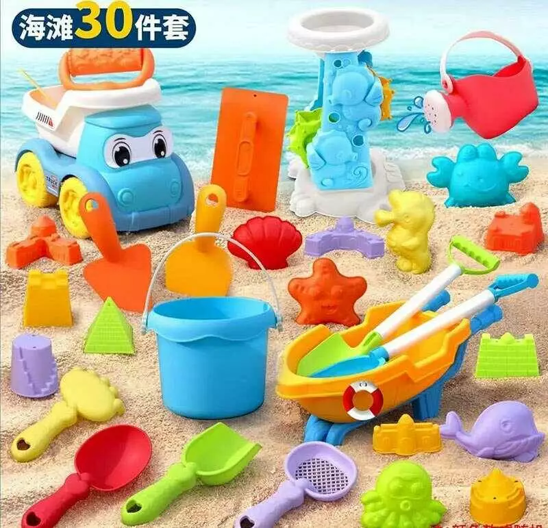 Пісочний набір W 218-47 (36/2) тачка, самоскид, відро, граблі, лопатки, сито, лійка, млин, валик, шпателі, 15 формочок, в сітці