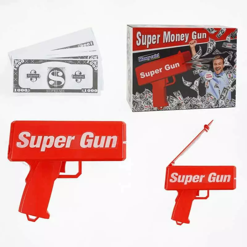 Пістолет для грошей 85169 (48) на батарейках, імітовані гроші, в коробці