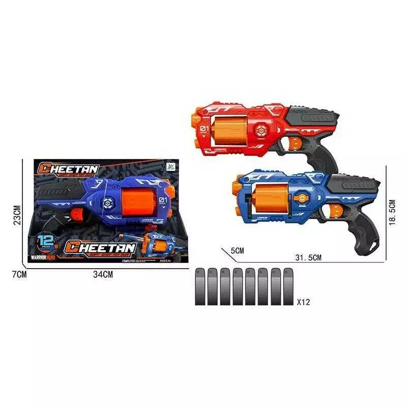 Пістолет JLX 7223 (48/2) 2 кольори, 12 м`яких патронів, обертаються барабан, у коробці