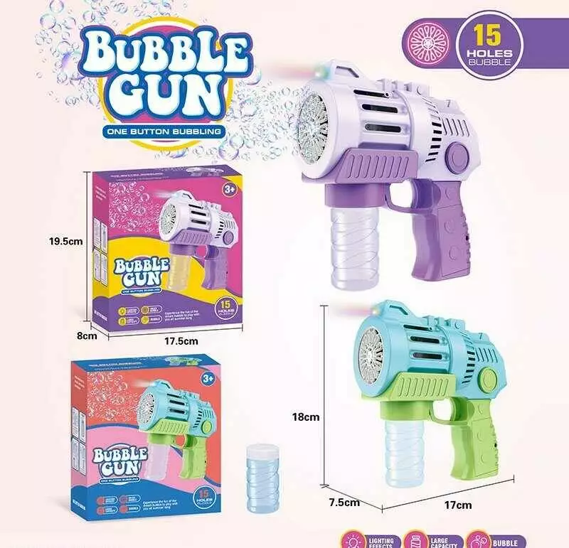 Пістолет з мильними бульбашками 129 (60) 2 кольори, підсвічування, пляшка з мильною рідиною, в коробці