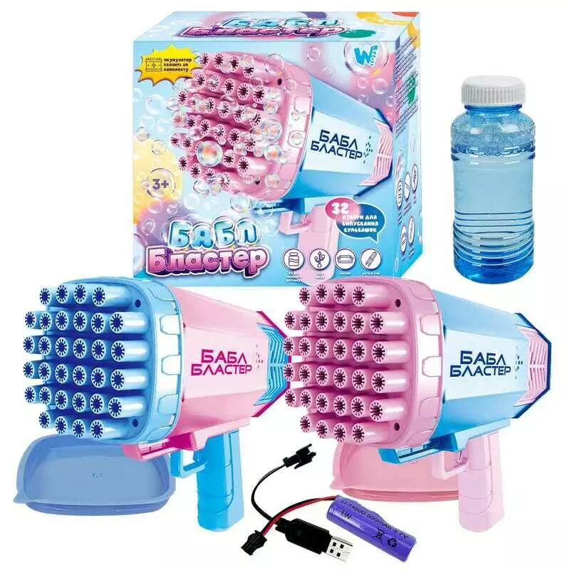 Пістолет з мильними бульбашками 17799 (80) "WToys", 2 види, акум. 3,7 V, кольорове підсвічування, 32 отвори, мильний розчин, в коробці
