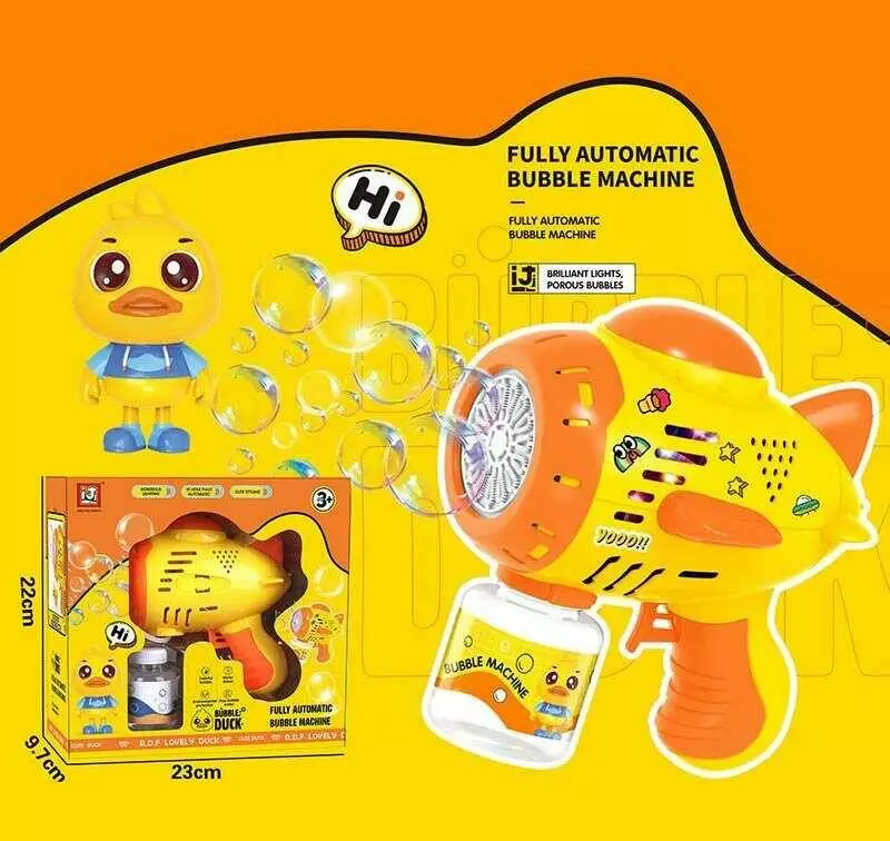 Пістолет з мильними бульбашками 2023-43 A (48) підсвічування, наліпки, пляшечка з бульбашками, від батарейок, в коробці