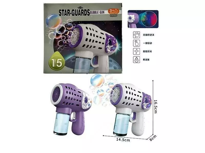 Пістолет з мильними бульбашками 622 A (96) 2 кольори, підсвічування, проєкція зіркового неба, 15 отворів, мильний розчин, на батарейках, в коробці