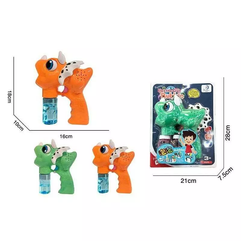 Пістолет з мильними бульбашками 6267 (60/2) 2 кольори, “Динозавр”, на батарейках, музика, підсвічування, 2 пляшки мильного розчину, автоматичний принц