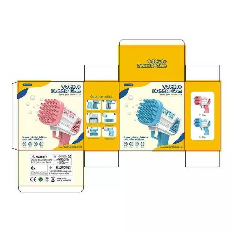 Пістолет з мильними бульбашками 636-80 (96) 2 види, 32 отвори, автоматичний принцип, пляшечка з мильним розчином, посудина, в коробці