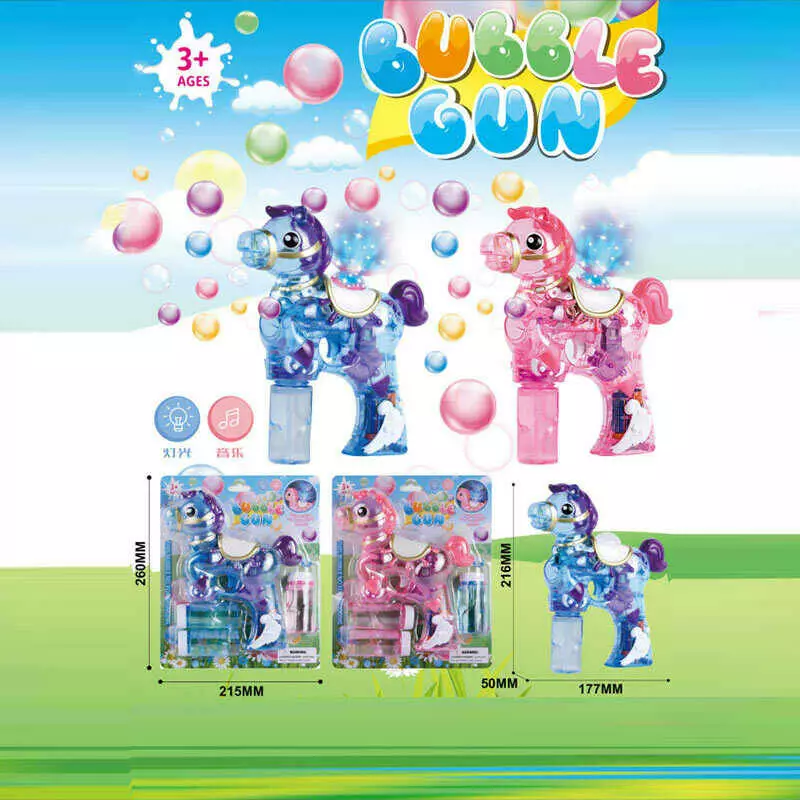 Пістолет з мильними бульбашками 667 (48/2) 2 кольори, “Поні”, автоматичний принцип, 3 пляшки мильного розчину, музика, підсвічування, на батарейках, н